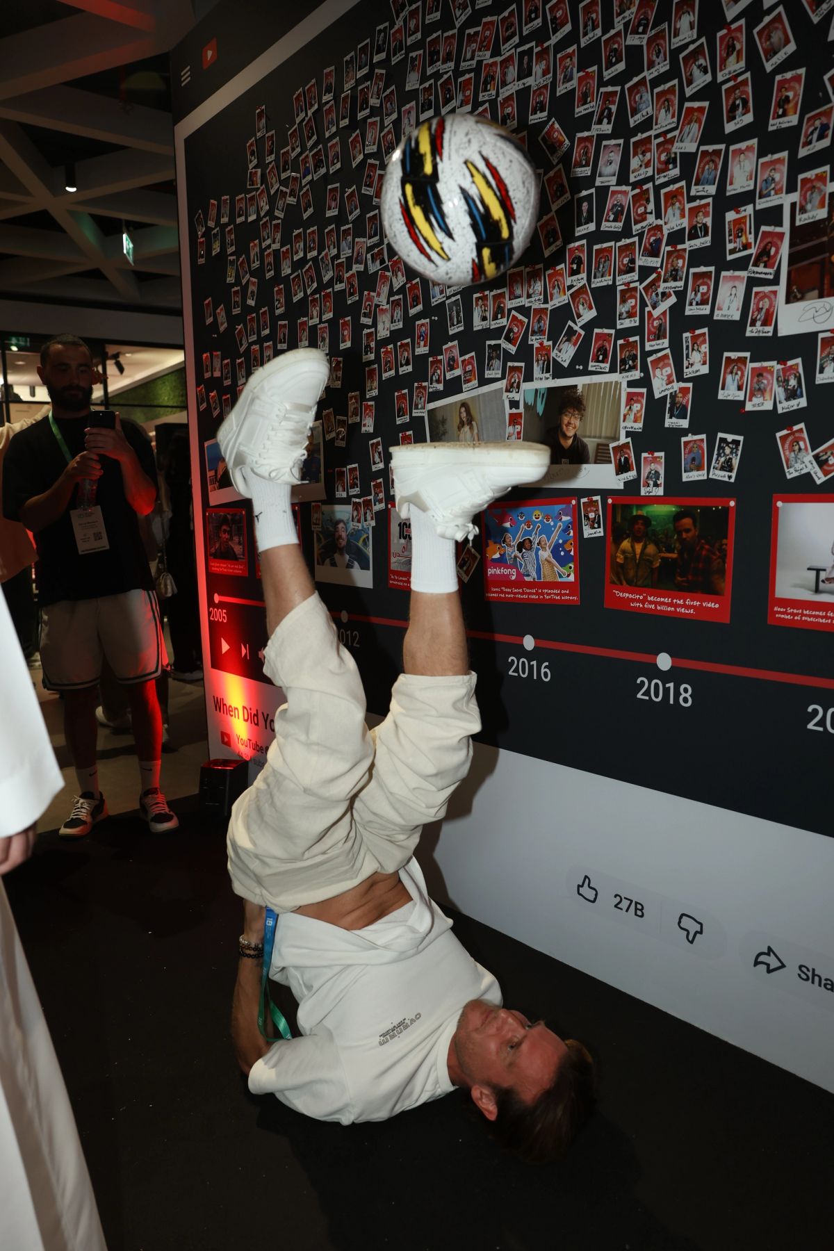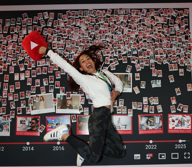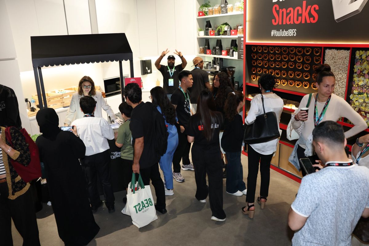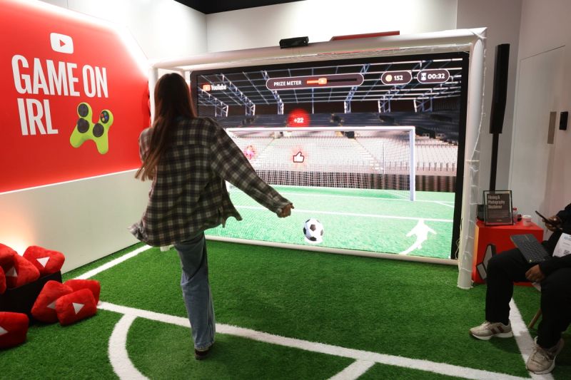 We designed the space to be as interactive as possible, starting right at the entrance with a giant YouTube Play Button and a Polaroid wall where guests could share their day one stories. Inside, the layout flowed from a content-led main stage into a series of zones that celebrated the platform's culture. We built an upside-down creator studio filled with iconic elements from viral videos for a unique photo op, and a high-tech AI dancing station where creators could play around with the ‘Make Me Move’ Shorts feature. We also included a custom digital football game for winning Play Button plushies which quickly became the busiest spot in the room. We also hosted a dedicated beauty room powered by L’Oréal and to keep everyone fueled, we set up a branded F&B area along with a fully stocked Food Wall of snacks.